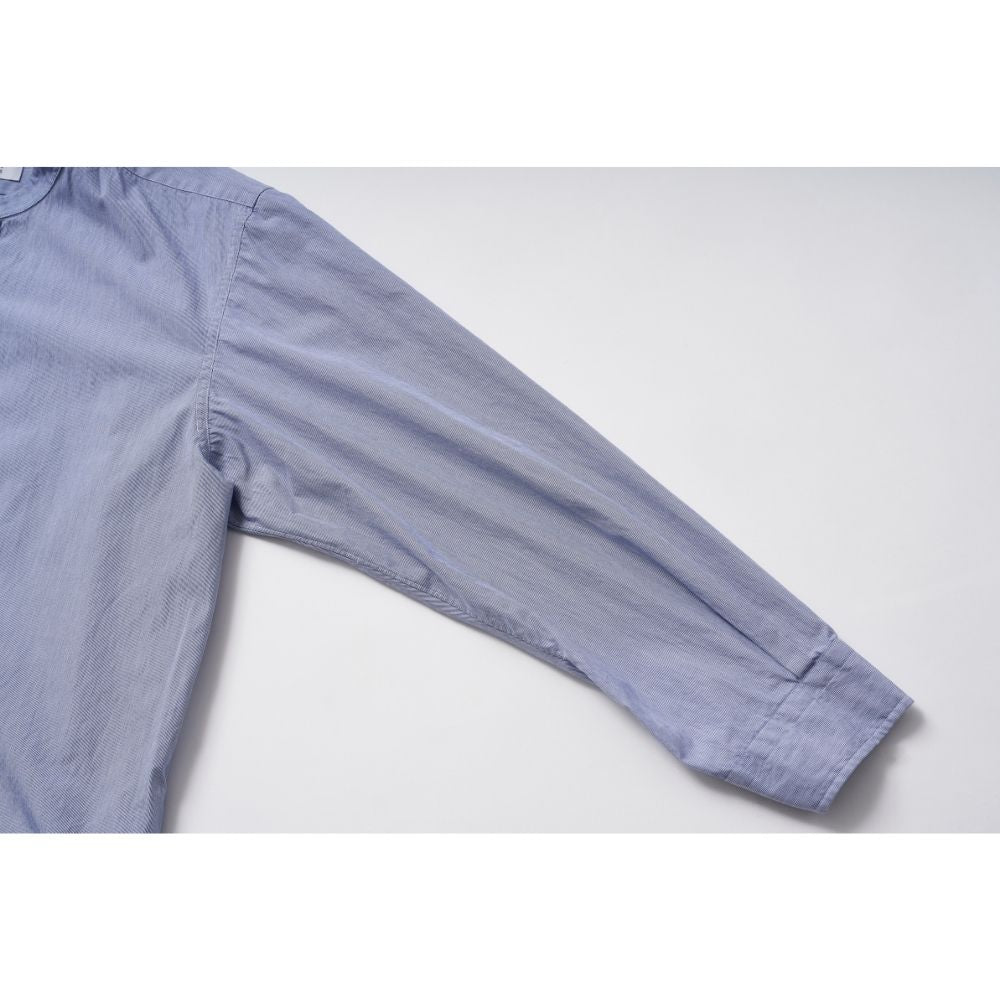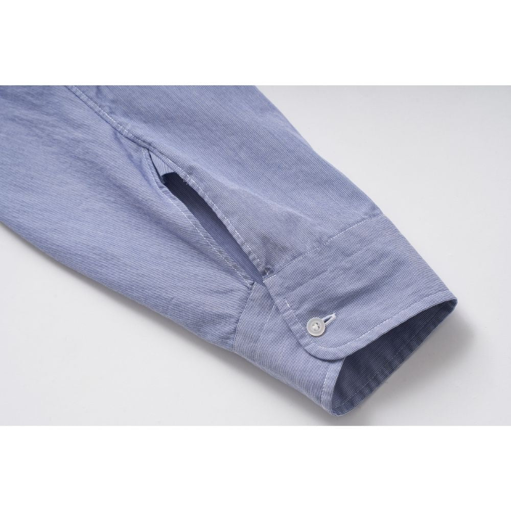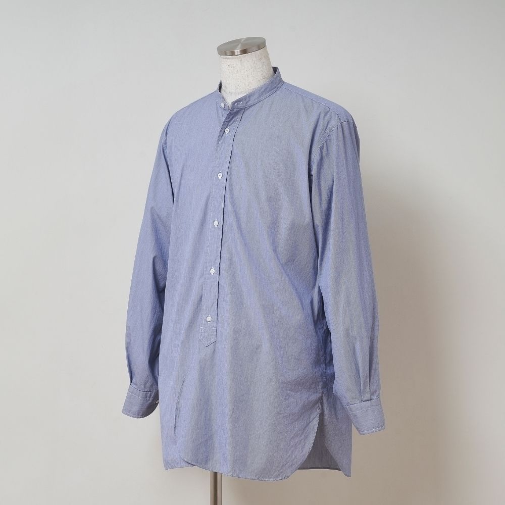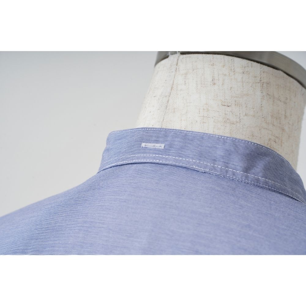 当時のイギリス官給品(警察・空軍)にも多く採用されていたエンド・オン・エンド(刷毛目)組織を再現した特別なブルー生地を採用。シャンブレーに似た表情を持ちながら、ドレスシャツに近い光沢とハリを備えているのが特徴です。