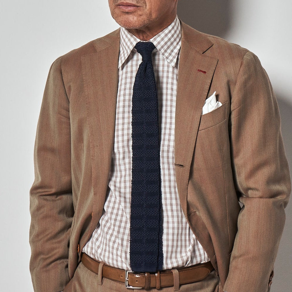 細番手で繊維長の長いシルクを用い、伸びやすいニットタイの常識を覆すほどのしっかりとした締め心地を実現しました。