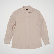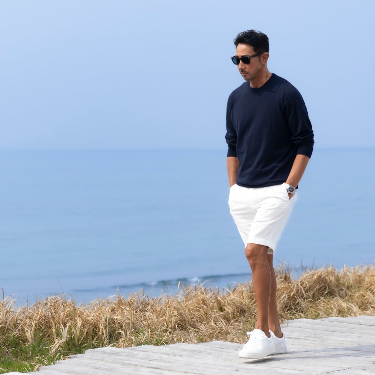 夏らしくクリーンなコーディネートを作れるだけでなく、絶妙な生地厚のおかげでインナーウェアの色が響きにくいよう配慮されたホワイト。新色のベージュはネイビーはもちろんホワイトやアースカラーなど幅広い色合わせができ、カジュアルな着こなしのなかにもドレスな品をプラスすることができるでしょう。