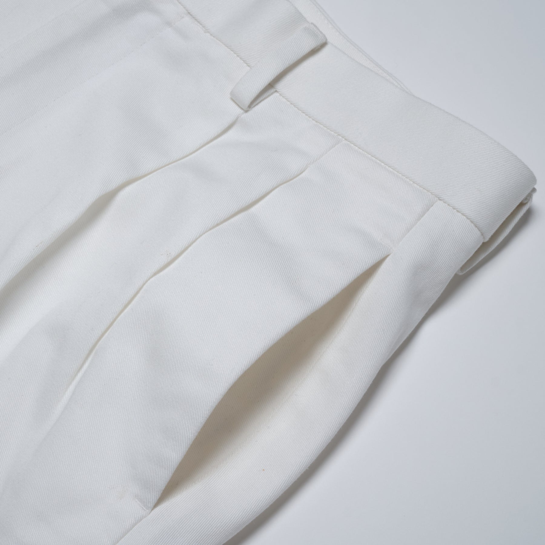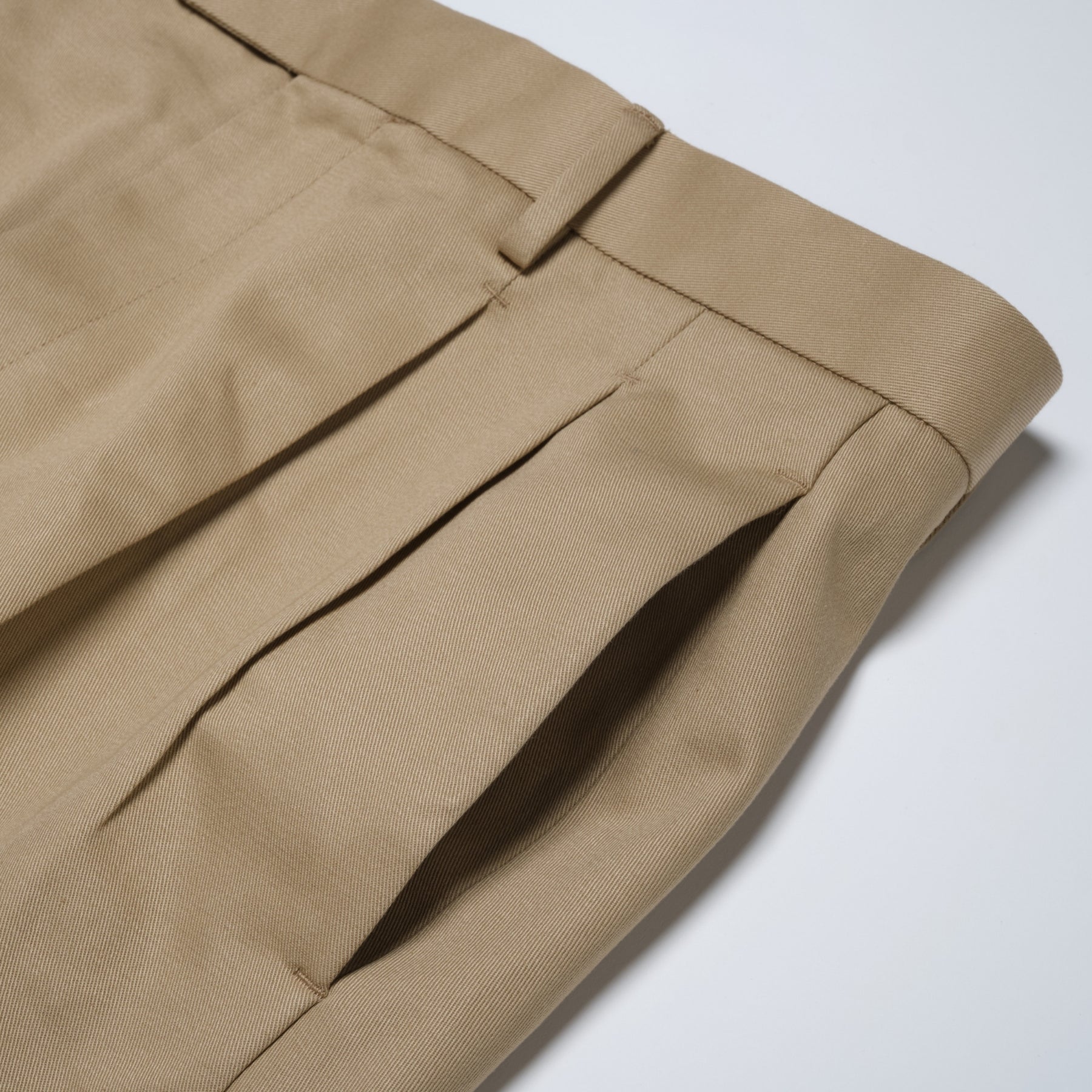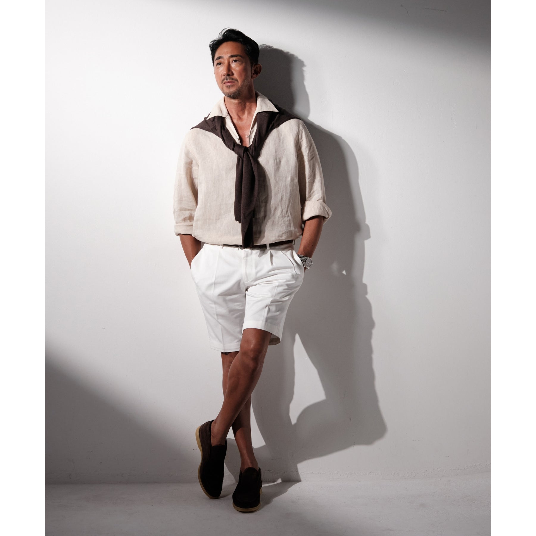 一年振りの再販売となる「大人のショートパンツ」は、浅めのタックを施したツーアウトプリーツで、ウエスト周りはゆったりと立体感がありつつ、手をポケットにインした時の使い勝手やシルエットも最高。