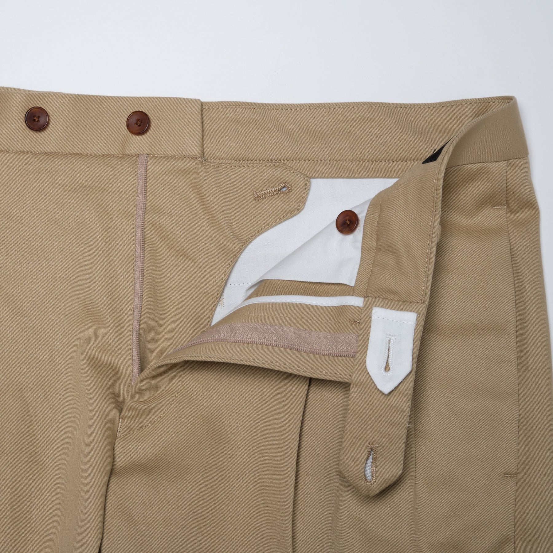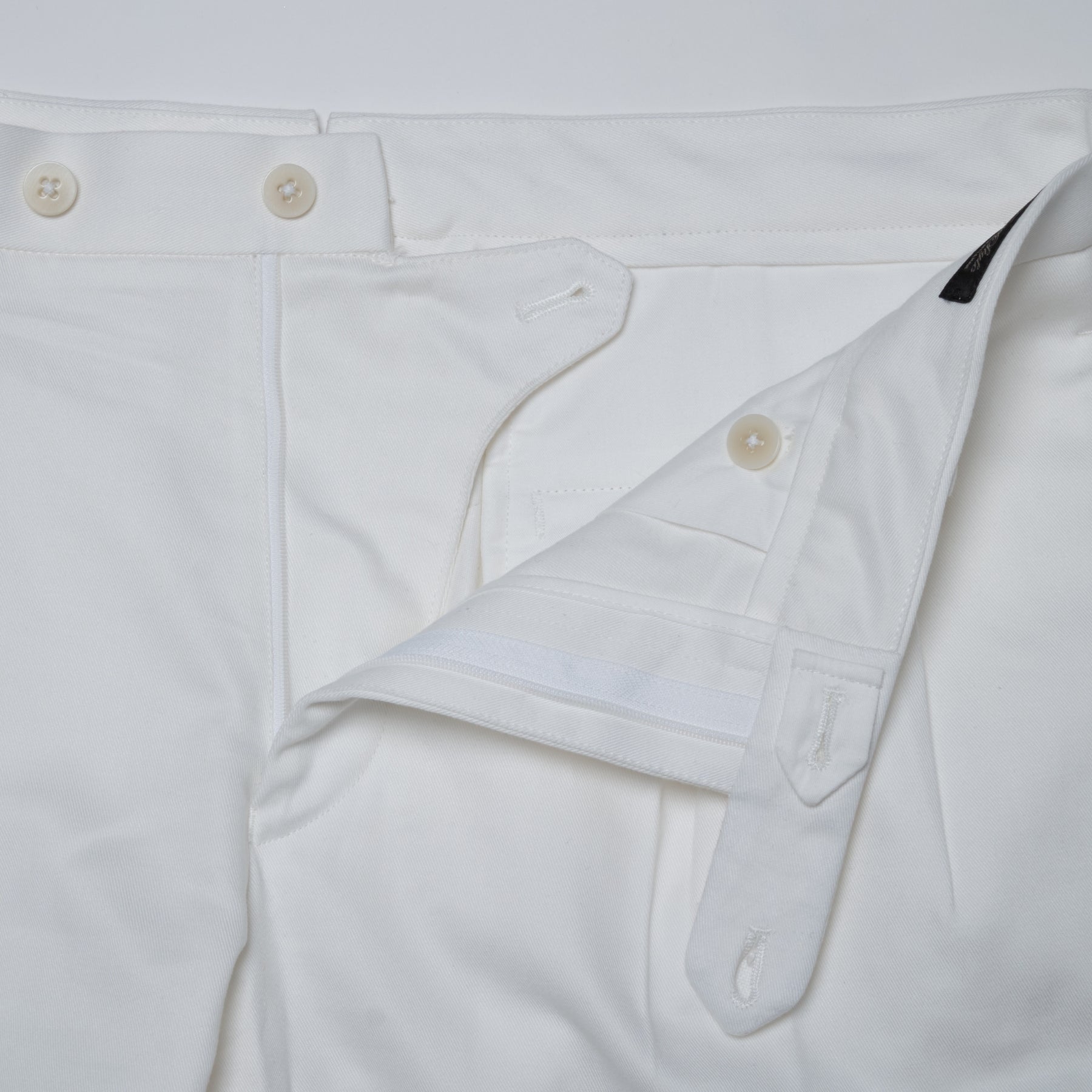 持ち出し付きのフロントに加え、小持ち出しも備えた本格的なドレストラウザー仕様。見た目の品格だけでなく、着用時の安定感とフィット感にも配慮した設計です。