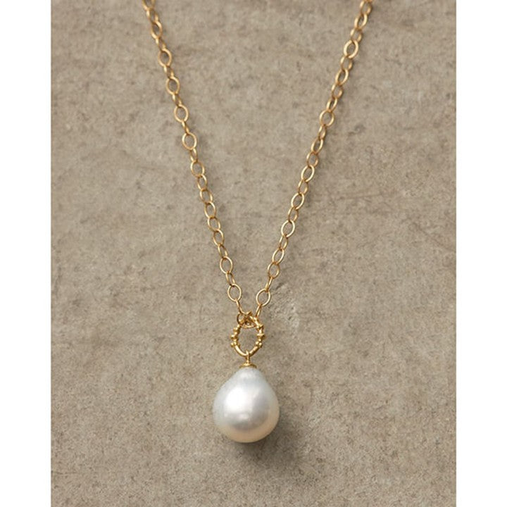 白蝶バロックパールとゴールドのチェーンが、洗練された華やかな女性らしさ 静謐な美しさを湛える11ミリサイズの白蝶バロックパールとゴールドのロングチェーンが、洗練された華やかさを添えるネックレス。チェーンはやや長めのスタイリッシュな60cmです。長さの調整が可能ですので、胸元のデザインや空きに合わせてお好きな長さでお楽しみいただけます。 着用した際、パールのヘッド部分が胸下に来るため、顔まわりの印象が強くなりすぎず、日常で気負いなく使うことができます。それでいてパールの持つ品の良さときちんと感があるので、カジュアルな装いだけでなく仕事のシーンまで幅広く使うことが可能です。 また、ヘッド部分の白蝶バロックパールは、光の加減によって白から薄いグレーまで、ニュアンスのある色に輝きます。11ミリのサイズ感は、程よい存在感があり、自然が生み出すバロックパールの持つ個性も楽しめます。時を経ても色褪せない魅力を持つ、“お守り”のように長く身につけていただけるネックレスです。