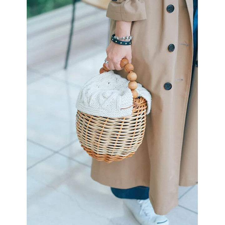 ミモレストアで人気の「ヒツキ」から、秋冬バージョンとして登場したニットカバーが付いたかごバッグ。ご好評により初回分が完売し、かごの素材の一部があけびから籐に変更になって再登場。上下の部分がブラウン味の強いあけびから、籐に変わり、よりナチュラル感がアップした仕上がりとなりました。スタイリストの福田麻琴さんがデザイナー武市さんにご相談してスペシャルオーダーさせていただいたオフホワイトのニットカバーは、ひとつひとつネパールで編まれた温もり溢れるハンドメイド。重くなりがちな秋冬の着こなしのアクセントになる、ここでしか出会えないかごバッグです。