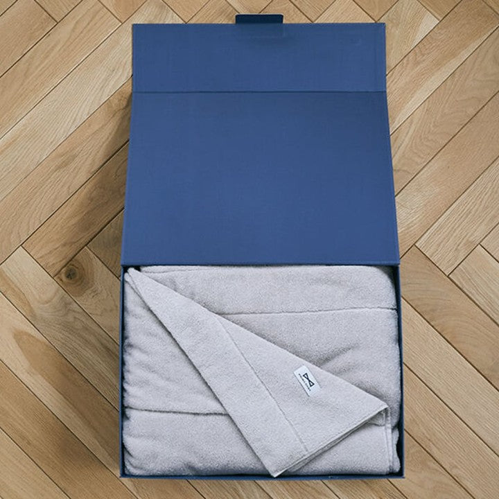 最高品質のオーガニックコットン「スーピマ(Super Pima/高級ピマ)」を使用したタオル素材のシングルケット。超長綿ならではの、繊細さと艶感があり、カシミヤのようにふっくらと柔らかな肌触りが魅力。ちょっと肌寒いなと感じる日、季節の変わり目の温度調節や夏の冷房対策など、シーズン問わず活躍するタオルケット。飽きのこないシックなカラーリングは、ギフトにぴったり。1枚持っていると頼りになるアイテムです。
