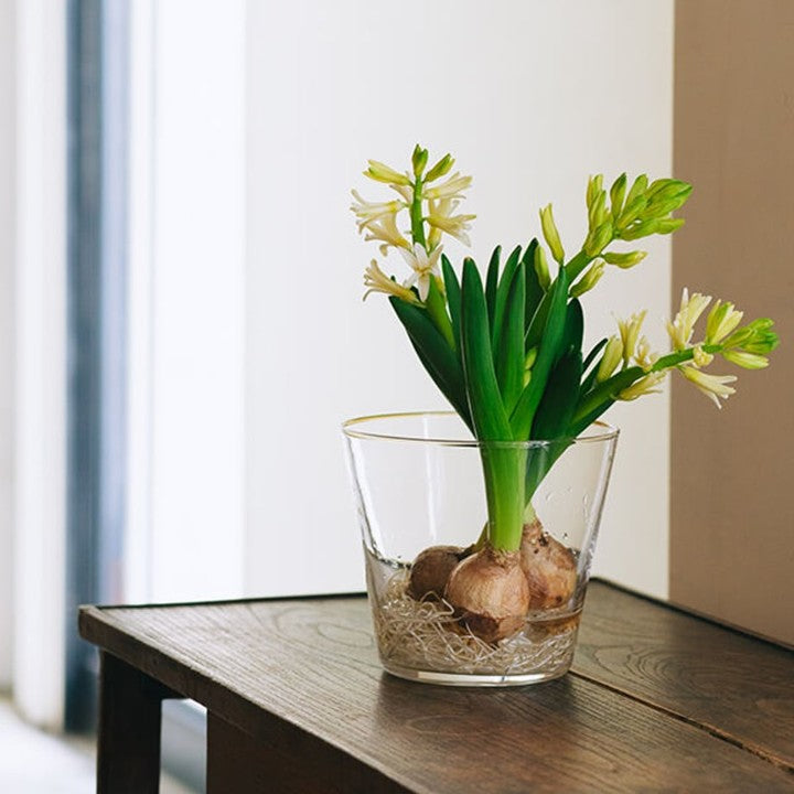 mi-mollet STOREでご紹介する暮らしのアイテムとしてフラワースタイリストの平井かずみさん、日本の老舗ガラスメーカー「Sghr スガハラ」とトリプルコラボした「ガラスの花瓶」の販売がスタートしました。しかも大小2個セットという他にはないスペシャルな逸品です。