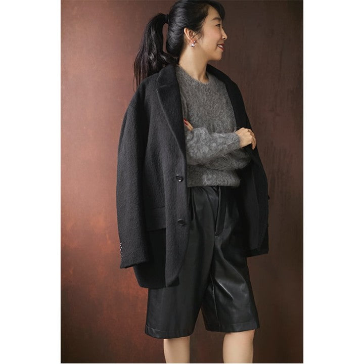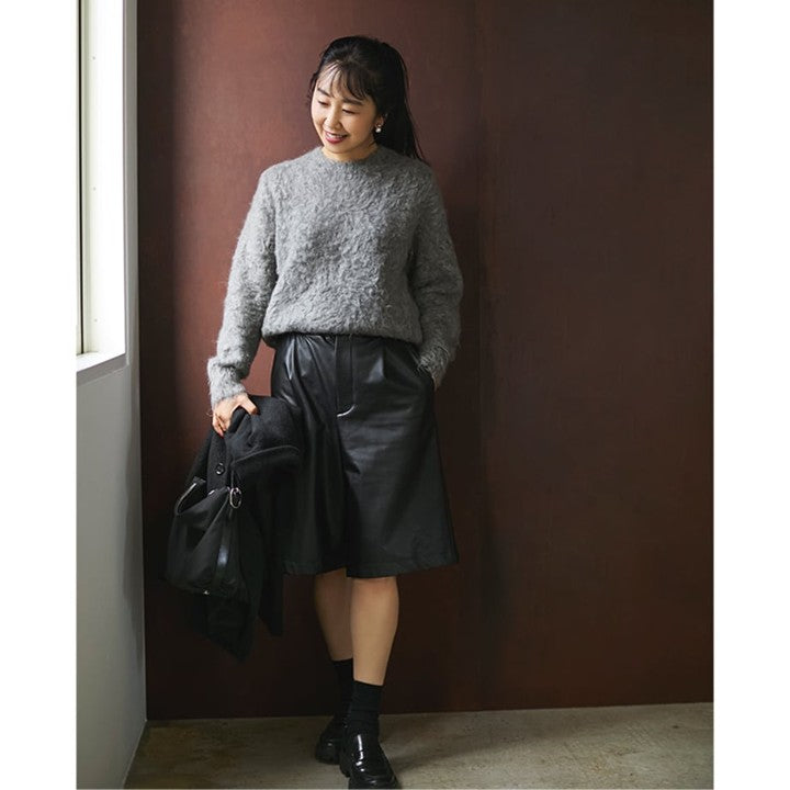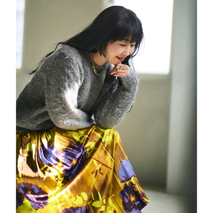 今年もモヘアなど〝素材感のあるアイテム〟のトレンドは引き続き継続中。「スローン」の別注モヘアニットは、独自の加工でくるっとカールをかけた長い毛足が上質感&着映え感たっぷり……!奥行きのあるグレーモヘアは、柄やきれい色のボトムスとも好相性。主役にも名脇役にもなれる、優秀な一枚です。(福田麻琴さんより)