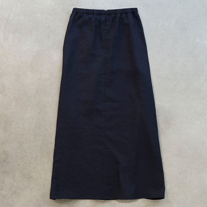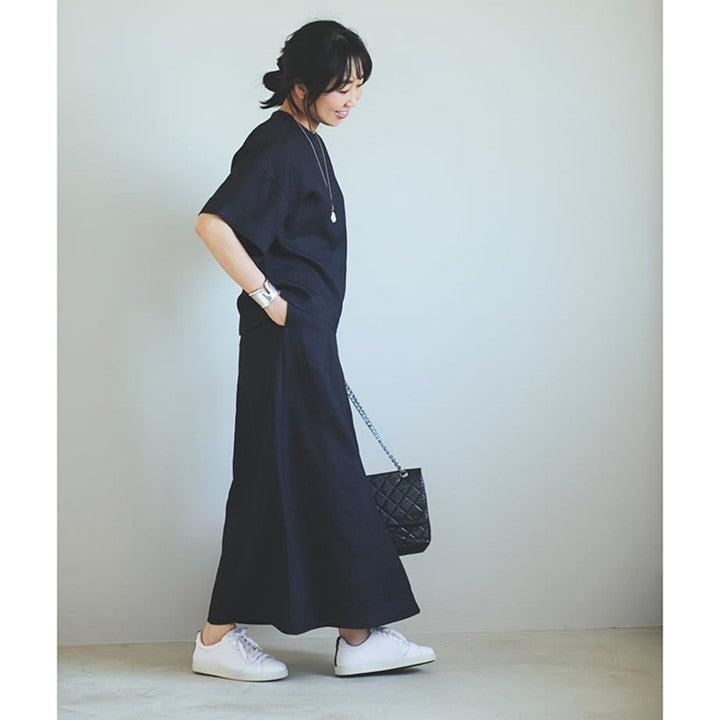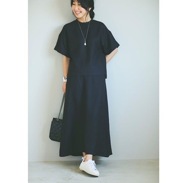 エディター、ライターなどファッション業界で働く女性にもファン多数の「NAVE(ネイブ)」。スタイリストの斉藤くみさんと福田亜矢子さんがディレクターを務める、2023年にデビューのブランドです。このたび、ブランドで毎シーズン大人気の同色同素材のアイテムが揃う「カセットシリーズ」をミモレだけの別注でオーダーさせていただきました。バイイングディレクターの福田麻琴さんがミモレ読者に選んだのは、これからの時期にぴったりの軽やかなスラブツイル素材の「半袖ブラウス」「パンツ」「スカート」「ワンピース」の計4アイテム。少し光沢のあるブラックが上質なムードを高めてくれます。