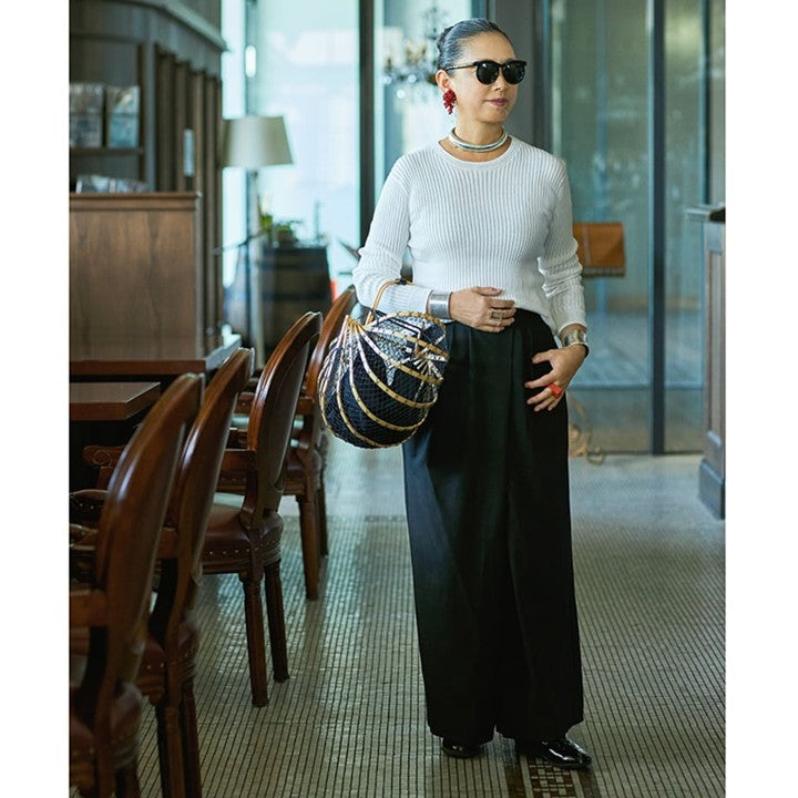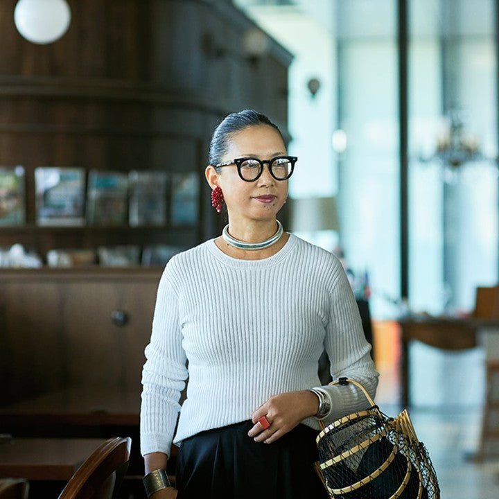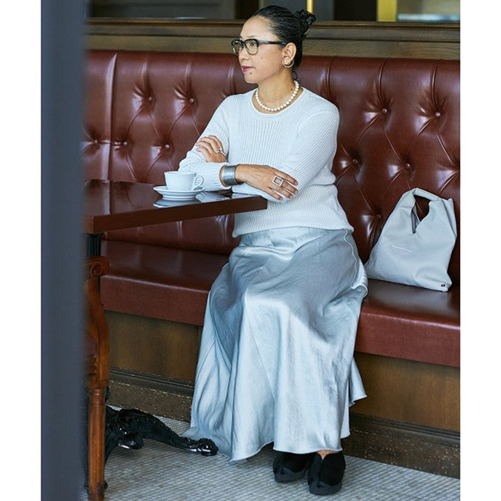 オーガニックコットンを用いた心地よい暮らしの衣服を提案するブランド「ナナデェコール」から、ご自身のイニシャルを冠したブランド「KO」を7年に渡り発表している服飾ディレクターの岡本敬子さん。今回は、上質な素材と遊び心溢れるディテールが人気の「KO」とミモレストアとの別注で制作した、「大人の白」にこだわったリブニットを制作しました。年齢を経るごとに「白の使い方が大事になってくる」という岡本さん。