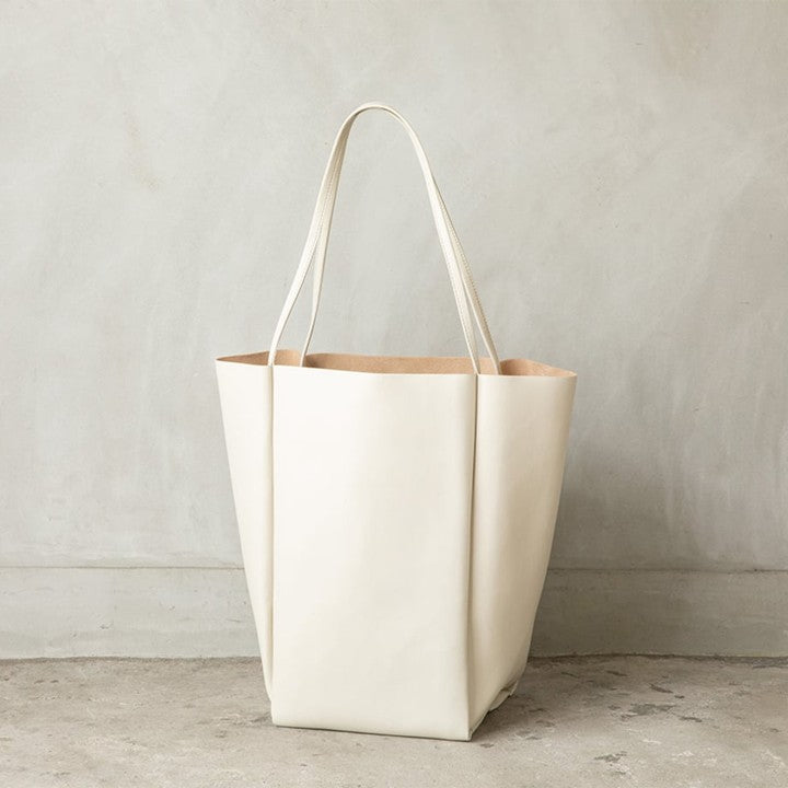 前回、大人気だった「スキュー」の別注トートバッグがニューカラーになって登場です!待望の新色は、柔らかで気品の漂う「アイボリー」。上質感のあるお洒落なルックスながら、雨や汚れに強いヴィーガンレザーを使用しているのでお手入れがとにかく楽ちんなバッグです。