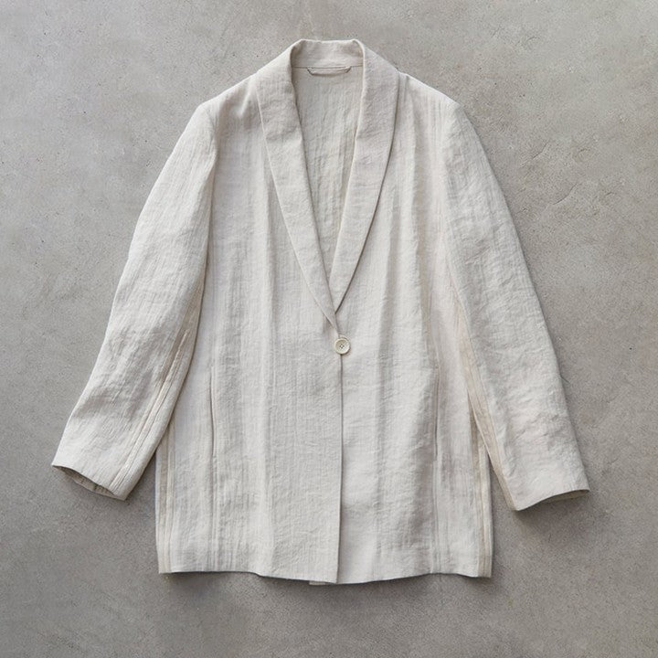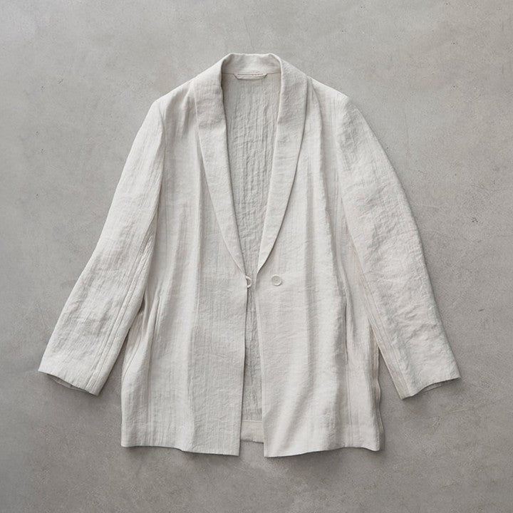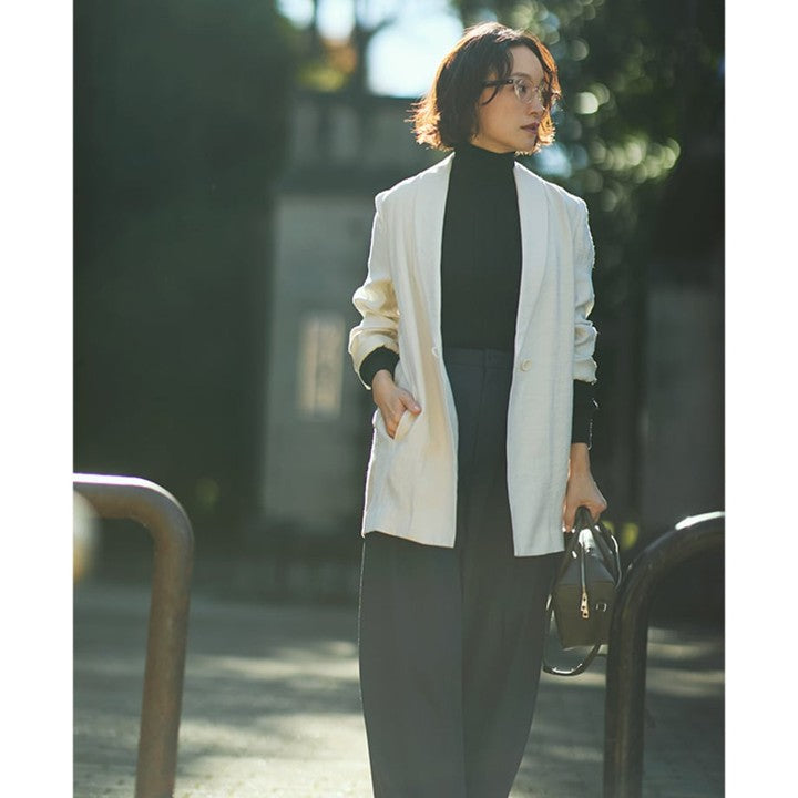 styling/の長年のベストセラーで毎回売り切れてしまうこのジャケットを、今回ミモレ先行でアイボリーを販売開始します。ジャケットのかっちり感が苦手、気温の変化が激しい昨今、毎日の羽織りに悩む……そんな方にこそおすすめです。