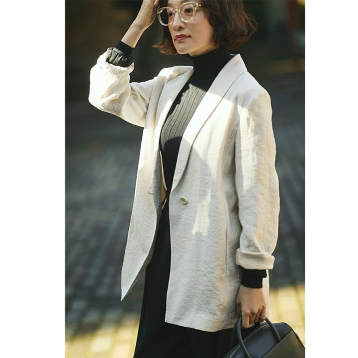 ミモレ編集長の川良が惚れ込み、色違いで4枚をリアルにヘビロテしているという「styling/(スタイリング)」のバックサテンジャケットが、この度念願叶ってミモレストアに登場! シワが目立たない表情感のある素材と、リラクシーなオーバーサイズシルエットが、お仕事コーデにほどよい抜け感を与えてくれる1枚。ほのかな光沢と、薄手でサラッとした着用感、さらにシワにならない素材感で、春〜秋にカーディガン代わりに大活躍してくれます。