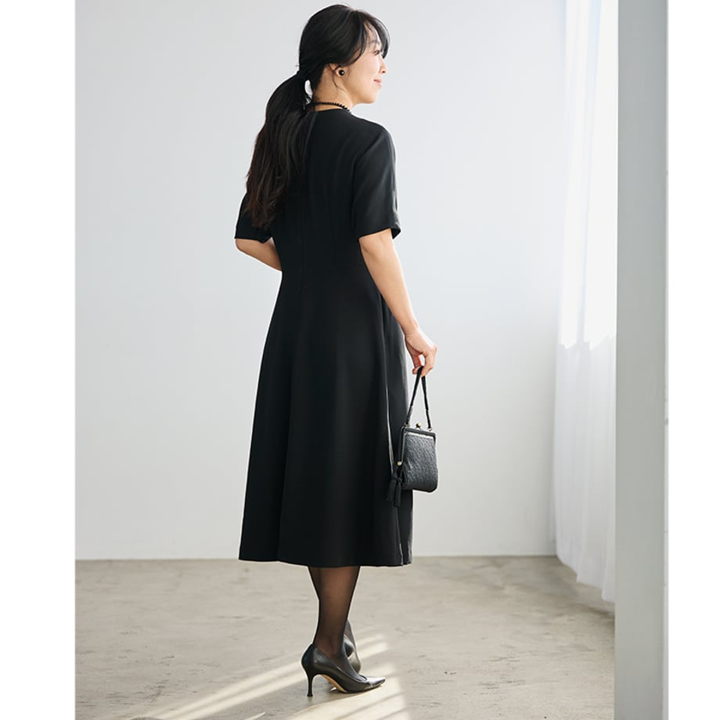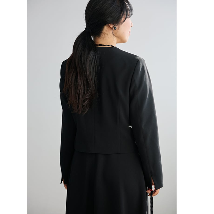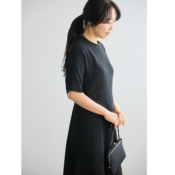 急に訪れる訃報の知らせ。慌てて若い頃に買った喪服を引っ張り出してみると、体型に合わなくて困ることも……。体型が少しずつ変化するミモレ世代は〝手持ちの喪服の見直し時期〟です。このたび、大人の女性にぴったりの「THE LINER(ザ ライナー)」とご一緒にミモレ別注ブラックフォーマルジャケットとワンピースを作成しました。「ザ ライナー」は「ミュラーオブヨシオクボ」を手掛ける久保嘉男・内田志乃婦ご夫妻がディレクションするフォーマルウェアブランド。ミモレ別注としてご一緒したのは、比翼のジャケットとフレアワンピースの正統派のアンサンブルです。流行に左右されず幅広い体型に寄り添う、エターナルなデザインは、着てみて実感するシルエットの綺麗さも秀逸です。