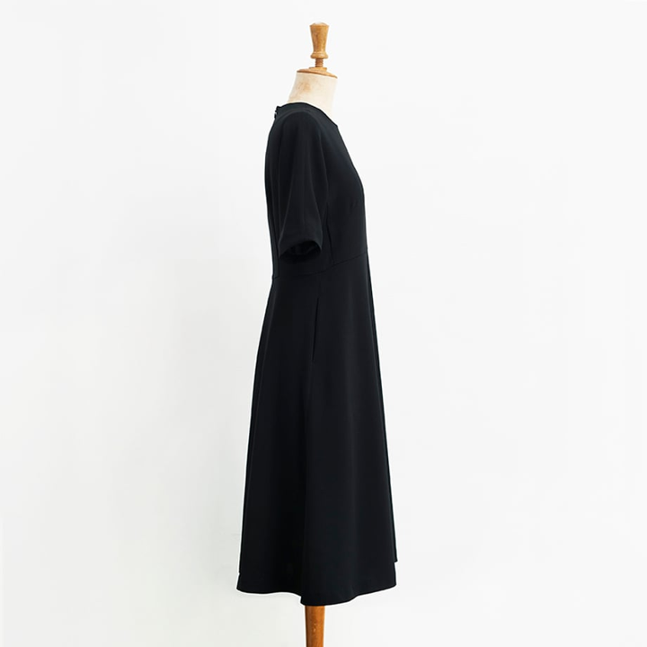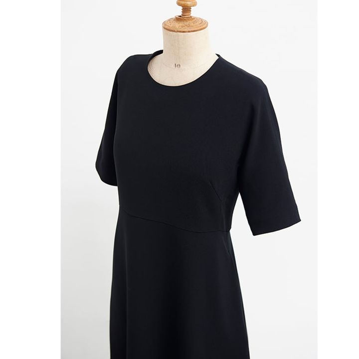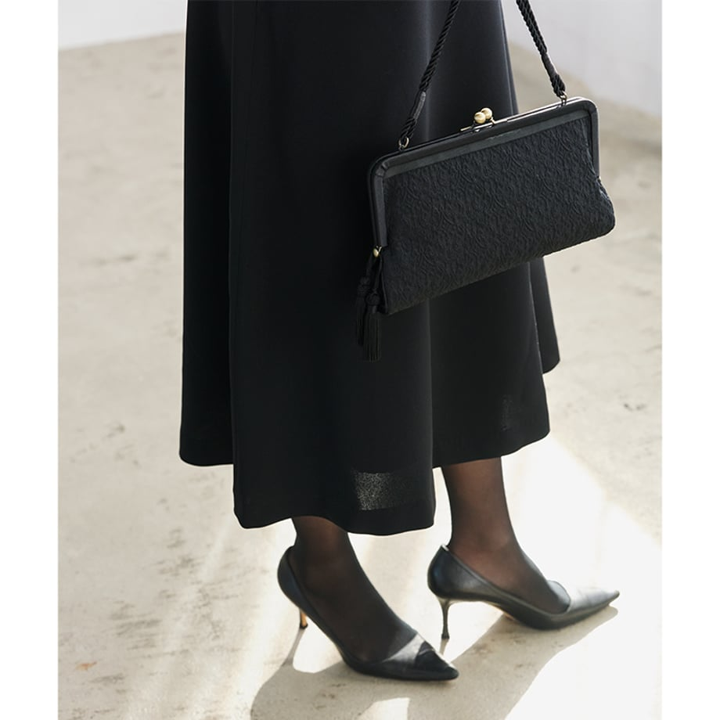 生地は喪の装いにふさわしい深い黒で、豊かな陰影感が特徴的。ブラックフォーマルの織地の生産地として名高い日本の北陸地方で生産された上質な二重織素材です。程よい膨らみがありシワになりにくく、手洗いが可能です。