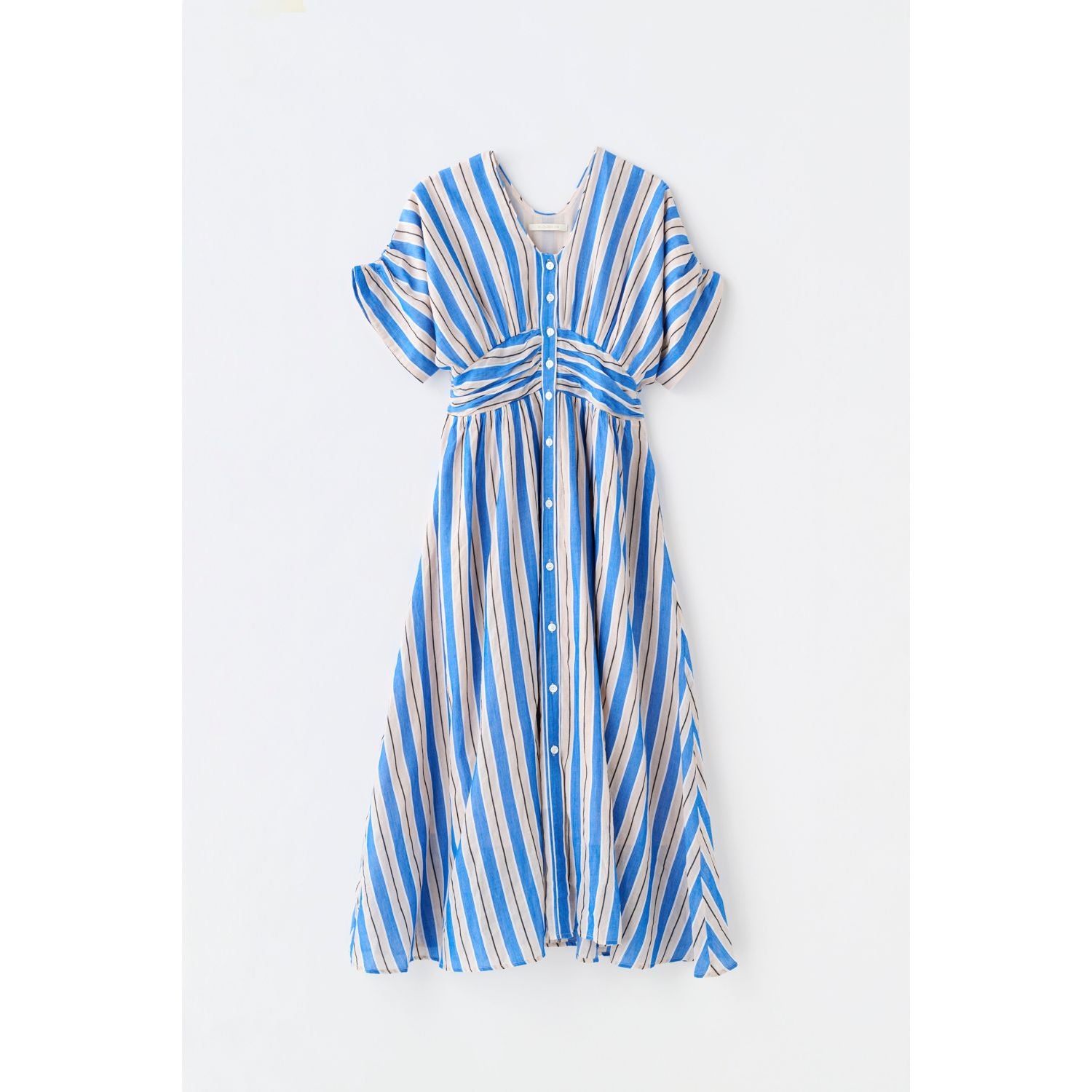 販売期間:2026年2月10日(火)12:00〜3月16日(月)12:00お届け時期:2026年3月下旬~4月上旬頃発送予定パリ在住のエッセイスト・井筒麻三子さんお気に入りのヌキテパのワンピース。2026年春夏の新柄として選んだのは、爽やかなブルーのストライプ柄です。