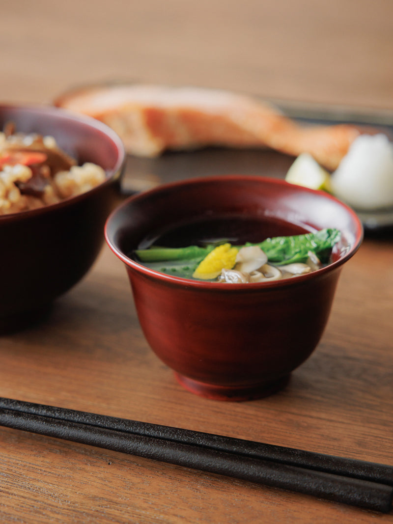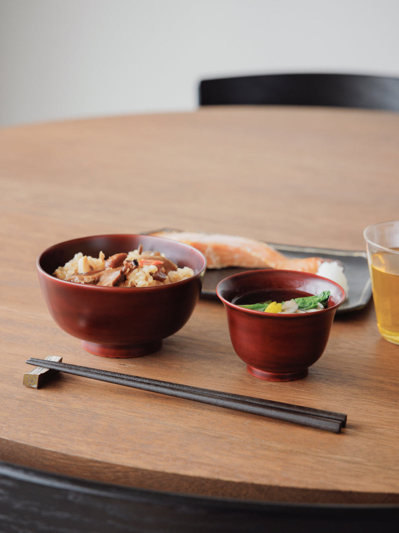日本の食卓でも馴染みの深い「漆の器」。なかでも輪島塗は、室町時代より連綿とその技術が受け継がれてきた日本が誇る伝統工芸品です。艶やかな漆の表面に沈金や蒔絵といった装飾が施され、「特別な日の器」というイメージも強い輪島塗。同時に、地元で採れる珪藻土を用いた独自の下地技法や、欠けやすい部分を布で補強する「布着せ」によって、非常に堅牢で修理も可能な「実用性の高い器」でもあります。 今回ミモレストアで販売するのは、昨年の能登半島地震により甚大な被害を受け、行き場を失った“輪島塗の器”を再生するプロジェクト「輪島塗 Rescue&Reborn」のお椀。輪島の家庭では冠婚葬祭などで使用する「御膳揃(ごぜんぞろい)」と呼ばれる、蓋付きのお椀5点と盆が1組になった器のセットを、各家庭で20〜50組、大きなお屋敷などでは100組以上持っているそう。今回地震の影響でそれを手放さざるを得なかったご家庭から譲り受け、「輪島キリモト」が器の再生に取り組んでいます。100年前の器も再生可能という堅牢な輪島塗が、今の食卓に馴染むようモダンに生まれ変わった美しい器をご紹介します。
