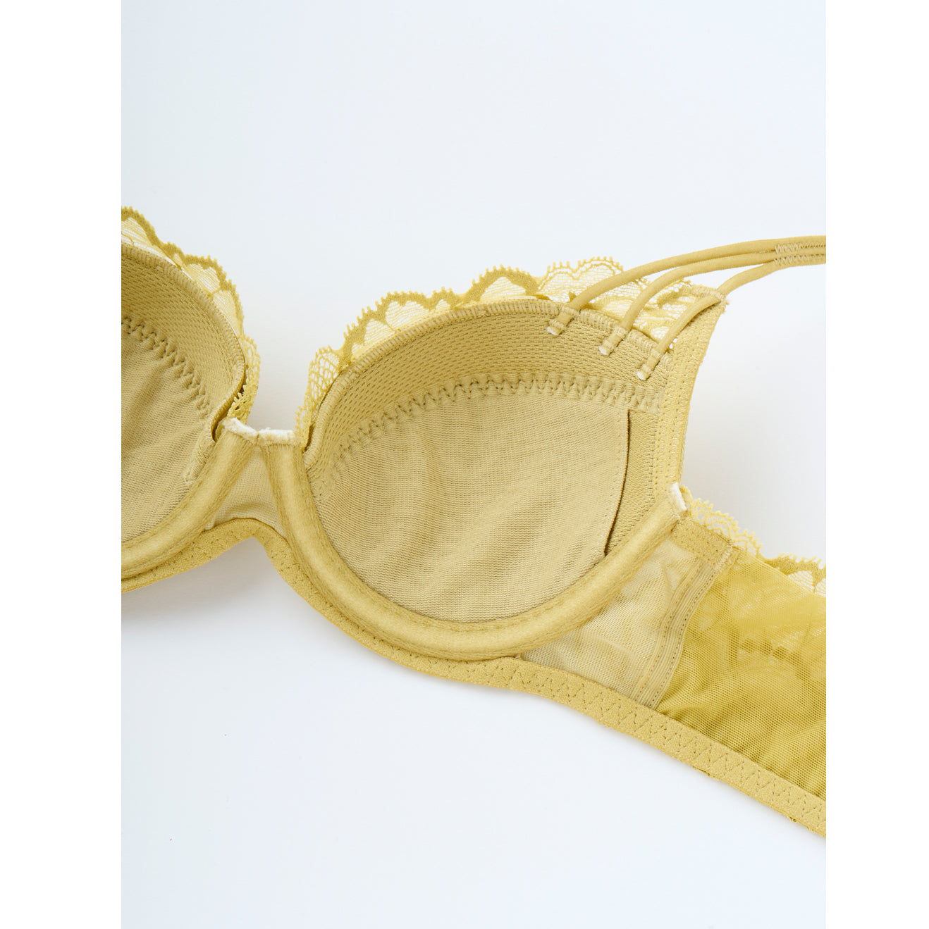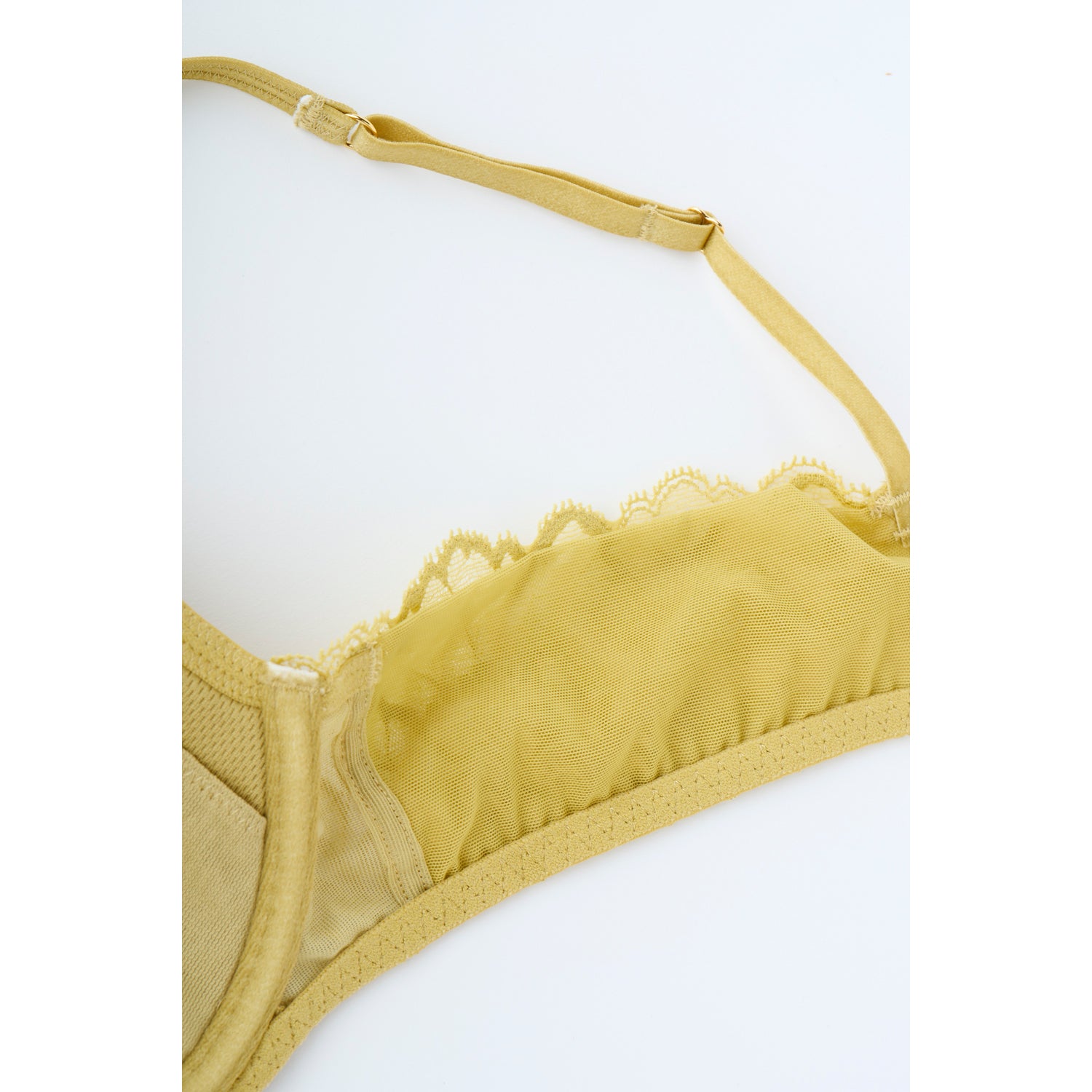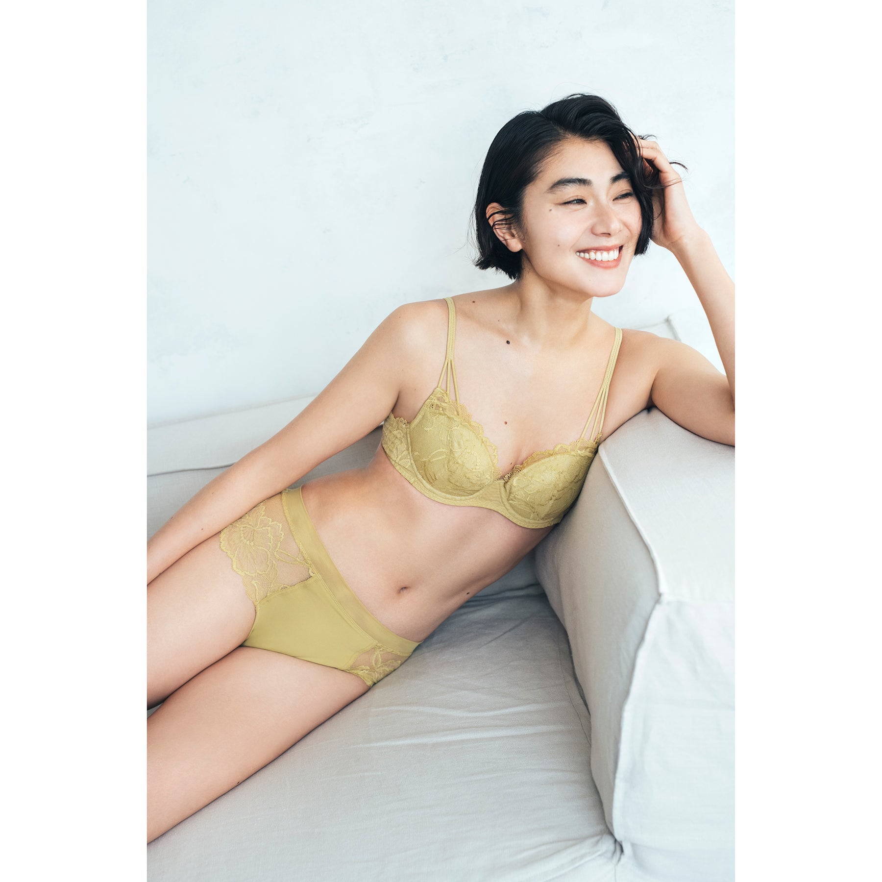 【記事はこちら】「ブラキャミ」よりラクでおしゃれ。盛らない、苦しくない、でも美しい「大人のためのブラ」が誕生!【FLORALE LUXE×mi-molletコラボ】https://mi-mollet.com/articles/-/58626mi-mollet STORE初の「大人のためのラクでおしゃれで美しいブラ&ショーツ」が誕生。コラボしたのは世界的なランジェリーメーカー・トリンプのプレミアムブランド『フロラーレバイトリンプ(FLORALE BY Triumph)』の中でも、肌にまとう究極の贅沢と呼ばれる最上級ライン「フロラーレリュクス(FLORALE LUXE)」です。繊細で優美なデザイン、そしてつけ心地にこだわった「5011」というシリーズから、ミモレコラボとしてニュアンスあるイエローグリーンをご用意。ブラにもショーツにも贅沢に使われているオリジナルのストレッチリバーレースには、花のモチーフがデザインに落とし込まれていて、このシリーズはセルリアの花がテーマになっています。【デザイン&つけ心地POINT】■ストレッチ性の高いオリジナルデザインのリバーレースを贅沢に採用■ゆるやかで浅めのU字ワイヤーなので優しく包み込むから苦しくない■サイドベルトの内側にチュールを配置、チクチクしない、食い込まない■盛らずに、無理のない自然な胸の丸みを叶える3/4カップ■派手ではないけど無難じゃない。他にはない着けていると心躍るイエローグリーン【仕様の詳細】■3/4カップ■ワイヤー入り■パッド無し(パッドポケット有り)■ストラップ付け替え不可(アジャスター有り)■フック数:2段3列同色、同素材のセットになるレギュラーショーツ、ストリングがあります。※裁断の関係上、レースの柄の出方が画像と多少異なる場合があります。