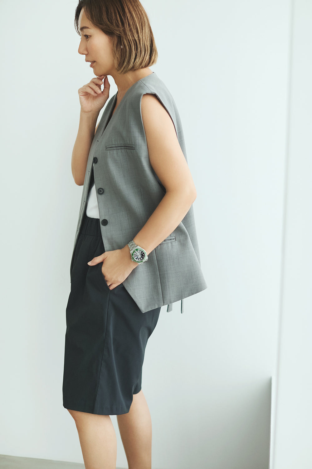 街でも海でも二刀流!斉藤美恵さんコラボ「大人のラッシュシャツ」が誕生!https://mi-mollet.com/articles/-/59210経験に裏打ちされたエッジィな審美眼で、ハイブランドから韓国ブランドまで、縦横無尽に着こなすスタイリスト斉藤美恵さん。その斉藤さんが立ち上げた大人のためのビーチウェアブランド「Leim(レイム)」と今回、ミモレストアが初コラボレーションをいたしました。美恵さんのこだわりの詰まった、海でも街でも活躍するシャツ、そしてショートパンツは、着るだけでサマになる、まさに大人のための新定番アイテム。撥水機能があるラッシュガード素材で作られたショートパンツは、海で水着の上に穿いたり、リゾートでは街中で着たり、もちろん街で着ることも想定されているので、普段の着こなしに…と、大活躍してくれます。シワになりづらくストレッチ機能も抜群、「大人のためのショートパンツ」斉藤さんのこだわりの詰まった1枚です。